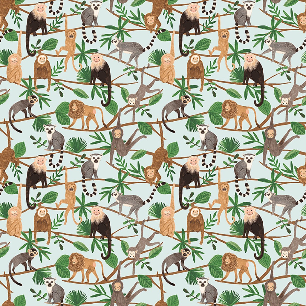 Happy monkeys and friends on a light turquoise background.